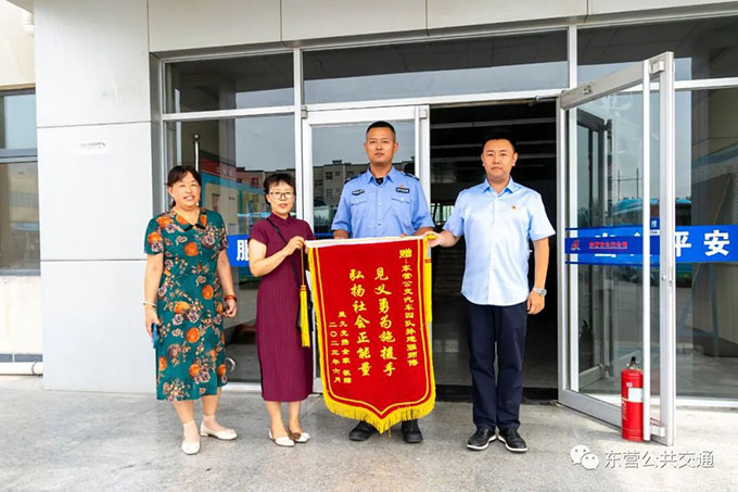 6月28日,側翻的老年代步車傷者的家屬一行來到東營市公交公司汽車四隊,他們帶著錦旗和防暑物資來感謝在危急時刻救出被困人員的東營公交駕駛員孫建強師傅。