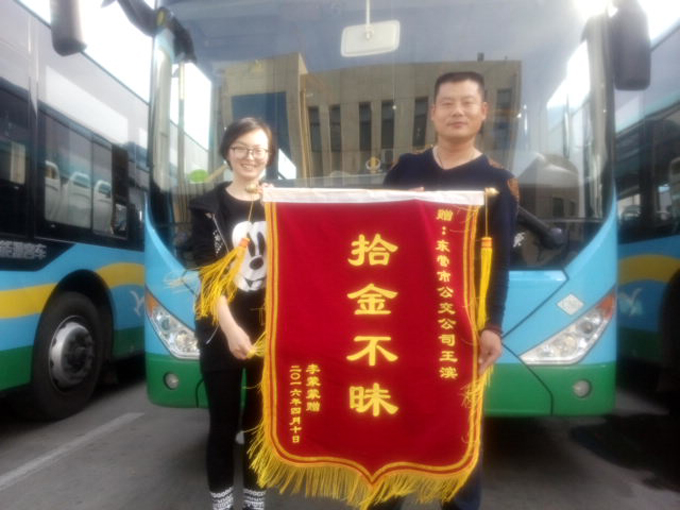 4月9日,在中心醫(yī)院上班的李蒙蒙女士來到市公交公司汽車四隊(duì),送來一面寫有“拾金不昧”的錦旗,表揚(yáng)駕駛員王濱。