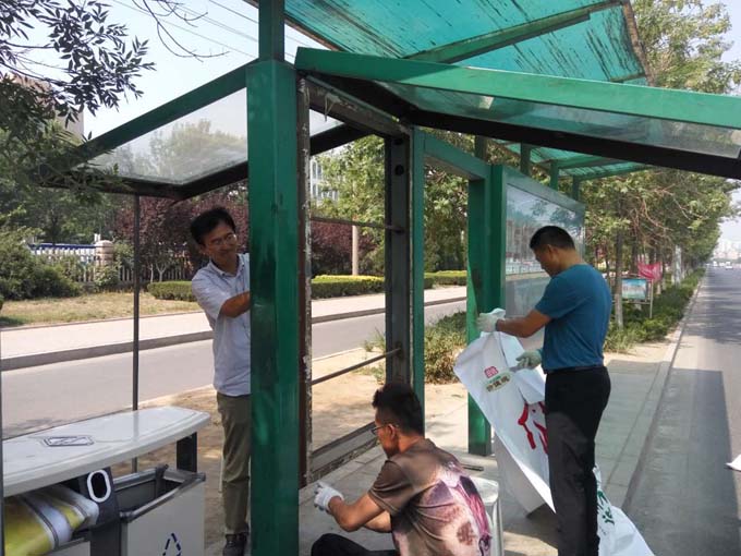 國慶前夕,市公交公司廣告部利用一周的時(shí)間,對(duì)部門所負(fù)責(zé)的車輛廣告,候車廳廣告及站牌設(shè)施進(jìn)行逐一排查,對(duì)畫面破舊損壞的廣告立即進(jìn)行拆除和更換,對(duì)候車廳、站牌等設(shè)施的衛(wèi)生進(jìn)行檢查,發(fā)現(xiàn)有達(dá)不到創(chuàng)城要求的現(xiàn)象,相關(guān)人員立即進(jìn)行處理、改進(jìn),確保排查過后廣告畫面整潔美觀、站牌設(shè)施標(biāo)識(shí)清楚完整。