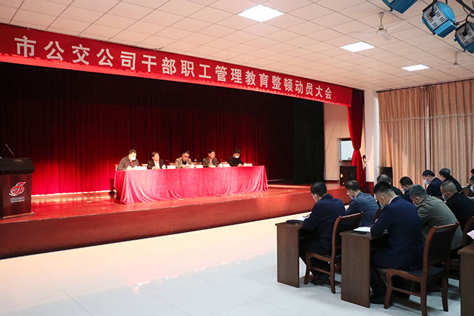 2021年11月5日上午9時(shí),市公交公司干部職工管理教育整頓動(dòng)員大會(huì)在南會(huì)議室召開,市交通運(yùn)輸局黨組成員、市交通運(yùn)輸事業(yè)服務(wù)中心主任王杰出席會(huì)議,公司黨委書記趙龍同志主持動(dòng)員會(huì)。
