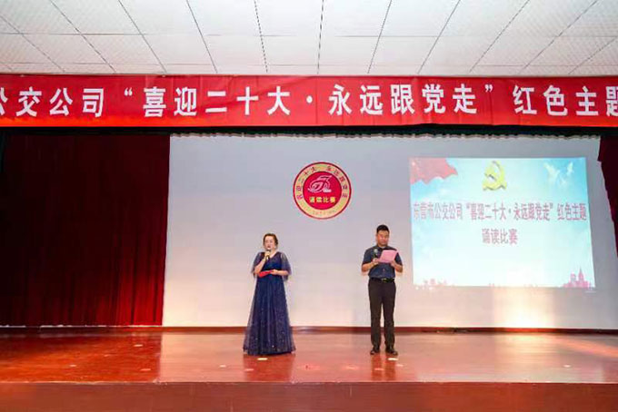 為迎接黨的二十大勝利召開,更加深入學(xué)習(xí)貫徹省十二次黨代會(huì)精神,集中展現(xiàn)新時(shí)期公交干部職工在各自工作崗位上的新作為、新?lián)?dāng)、新姿態(tài),引導(dǎo)公司干部職工更加堅(jiān)定理想信念,在“七一”建黨節(jié)來臨之際,市公交公司于6月30日上午組織開展了“喜迎二十大·永遠(yuǎn)跟黨走”紅色主題誦讀比賽活動(dòng)。市交通運(yùn)輸局直屬機(jī)關(guān)黨委專職副書記趙秀來同志到場(chǎng)指導(dǎo),市公交公司黨委委員、工會(huì)主席蔣積堯,黨委委員、辦公室主任劉玉忠等出席活動(dòng)。