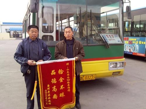11月17日,家住墾利縣城的李家林先生拿著寫有“拾金不昧、品德高尚”的錦旗來到了市公交公司汽車三隊(duì)對李業(yè)縣師傅表示感謝。經(jīng)車隊(duì)了解得知,11月10日汽車三隊(duì)駕駛員李業(yè)縣在運(yùn)行完117路班次后正常清理車廂衛(wèi)生時(shí)發(fā)現(xiàn)了一個(gè)黑色皮包并立即將皮包上交車隊(duì)。車隊(duì)負(fù)責(zé)人通過現(xiàn)場清點(diǎn),發(fā)現(xiàn)皮包內(nèi)共有現(xiàn)金2600余元,賬單一宗,根據(jù)包里面的信息及時(shí)聯(lián)系到失主李家林。當(dāng)李家林先生看到了失而復(fù)得的錢包時(shí),當(dāng)即拿出200元塞給李業(yè)縣以表示謝意,被李業(yè)縣婉意謝絕。回去后,李家林先生心情久久不能平靜,特意制做了錦旗送到車隊(duì),以表達(dá)感激之情,并要求車隊(duì)對李業(yè)縣師傅這種拾金不昧的優(yōu)良品質(zhì)進(jìn)行表揚(yáng)。李業(yè)縣同志作為剛到公交公司參加工作的新員工,在面對失主巨額財(cái)物的“誘惑”下,不為利益所動(dòng),秉承和發(fā)揚(yáng)了公交人一貫的高尚品質(zhì),他的所作所為充分展現(xiàn)了一名公交駕駛員應(yīng)有的職業(yè)道德素質(zhì)。