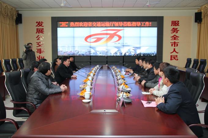 2月18日上午,省交通運輸廳人事處副處長韓明一行,在市交通運輸局黨委副書記鄭月成、工會主席王愛軍等領導的陪同下,到市公交公司智能調度指揮中心進行了專項考核指導。