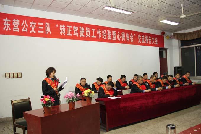 交流報告會上,仲有良、毛紅、丁文美、楊迎賓、侯圣學等五名同志代表17名轉(zhuǎn)正駕駛員先后作了發(fā)言。報告中分別從尊重領(lǐng)導、團結(jié)同事;顧全大局、服從安排;安全營運、優(yōu)質(zhì)服務(wù);加班加點、勤奮工作;持之以恒、保持激情;家庭和睦、鼎力相助等六個方面一一作了介紹。轉(zhuǎn)正代表在發(fā)言中,特別是講到服務(wù)乘客過程中因乘客刁難和不理解而受到的委屈時,因工作而照顧不上家庭、老人、孩子的愧疚時,情不自禁幾度哽咽,淚灑講臺,致使發(fā)言多次停頓。發(fā)言結(jié)束后,整個現(xiàn)場爆發(fā)出理解、贊許、鼓勵的掌聲。