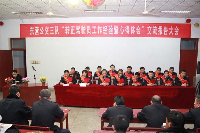 2012年3月28日晚上,市公交公司汽車三隊大會議室內(nèi)燈火通明,不時響起陣陣熱烈掌聲,轉(zhuǎn)正駕駛員“工作經(jīng)驗暨心得體會”交流報告大會正在如火如荼的進行。十七名已轉(zhuǎn)正駕駛員肩披綬帶、胸掛紅花、正襟危坐在主席臺上,臉上洋溢著無比自豪卻又略顯拘謹和羞澀。轉(zhuǎn)正的五名代表先后為車隊全體固定期限合同制駕駛員做了工作經(jīng)驗及心得體會報告。